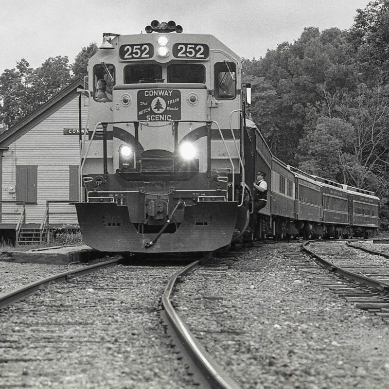 On August 4th, Conway Scenic marked its 46th anniversary with a bang. Former Maine Central GP38 252 suffered an engine failure leading the uphill Mountaineer near milepost 84, a mile east of Crawford station. GP35 216 was dispatched as a light engine to rescue the train. This occurred as tropical storm Isaias was bearing down on the White Mountain region. Upon reaching the disabled train, 216 coupled to the rear of the consist and shoved the entire train to Crawford station so that guests would be able to enjoy the full journey. This also avoided delaying the returning train at Bartlett while the Valley train was doing its run around. The Mountaineer arrived back at North Conway safely with locomotives at each end of the train. Presently our roundhouse is evaluating repair options of 252. This historic locomotive was delivered new to Maine Central at St. Johnsbury, Vermont in November 1966, and often worked Mountain Division freights until through freights were suspended in 1983. It was acquired from Pan-Am Railways along with 216 in 2010. Conway Scenic suffered its second 46th birthday casualty when a gust of wind from Isaias topped the vintage ball signal that stood in front of the station. The base of the wooden mast had been undermined by insects and the core hollow. The signal received significant damage as result of the fall, but our shop forces hope to repair it. Originally this signal stood at Waumbek Juction, and was arguably the best preserved example of a North American ball signal. The more famous ball signal, is located at Whitefield, but this signal no longer displays vintage balls, but instead 1990s-era replacements.
