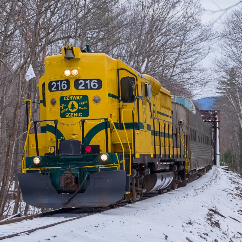 As I write this, we have big plans for expanded Snow Train service between North Conway and Attitash that will run most weekends in January and February, plus the two weeks around the President’s Day holiday. Trains will run on a two-hour interval, scheduled to depart North Conway at 9am, 11am, and 1, 3, and 5pm. The slightly longer interval on this schedule in comparison with the February 2020 timetable is necessary to accommodate the longer loading process and sanitization activities necessitated to mitigate against the spread of Covid-19.