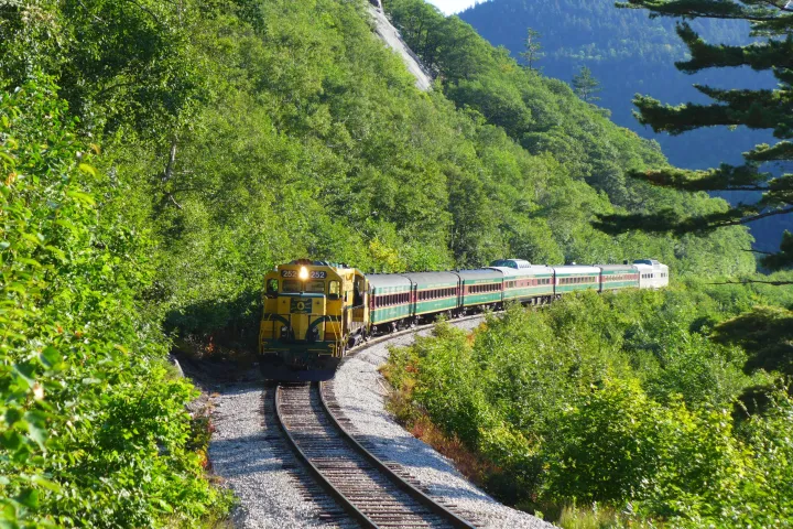 Conway Scenic’s most scenic journey, the Mountaineer offers a supremely scenic 4 to 4.5 hour rail journey through the Mount Washington Valley and over the rugged Crawford Notch. Enjoy views of the Saco River, travel across towering viaducts and through the rocky crags at the top of Crawford Notch!
